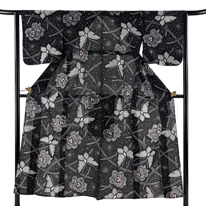 【浴衣】 黒系 黒 名品 B 約150cm~約159cm 裄丈63cm-64cm (S)size 袖丈46cm以下 9990-29990 五万以下