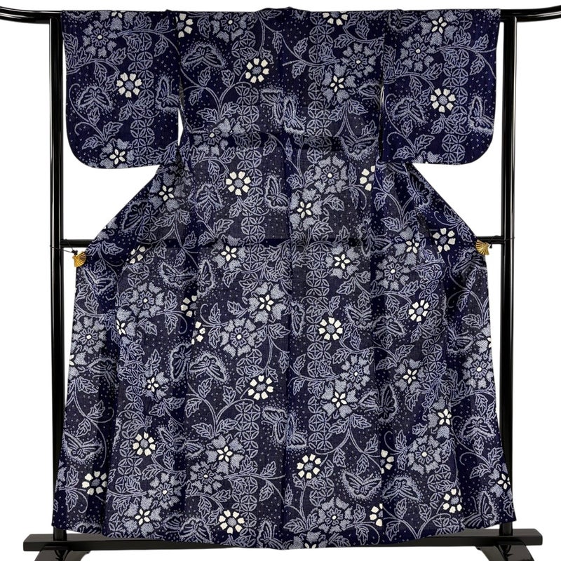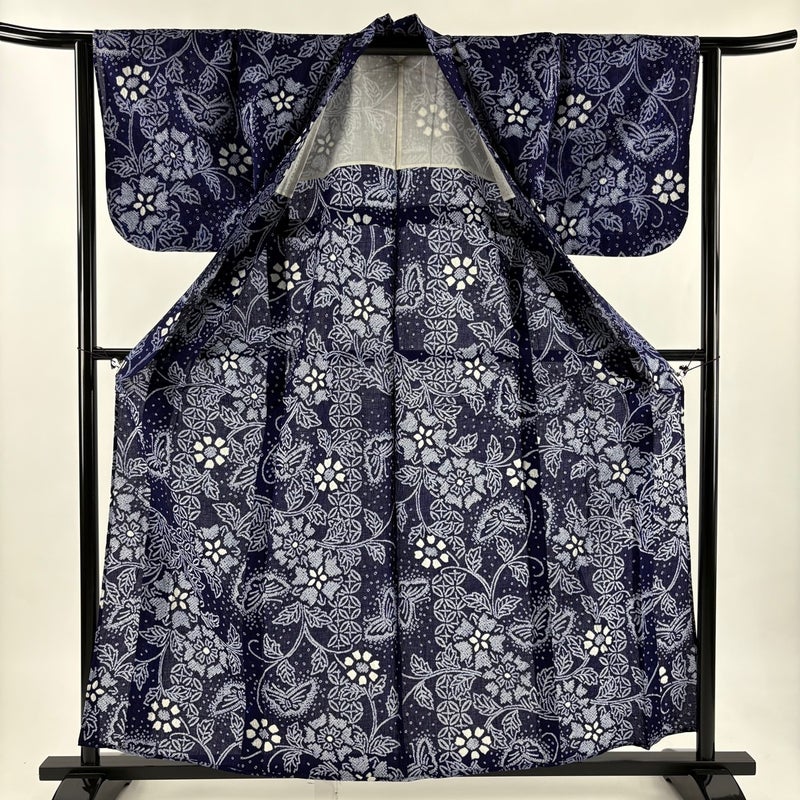 【浴衣】 青系 紺色 名品 A 約160cm~約169cm 裄丈62cm以下 (S)size 袖丈46cm以下 9990-29990 美品 五万以下