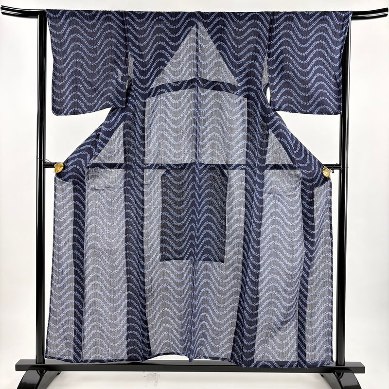 【浴衣】 青系 紺色 名品 A 約150cm~約159cm 裄丈63cm-64cm (M)size 袖丈47cm 30000- 美品 五万以下