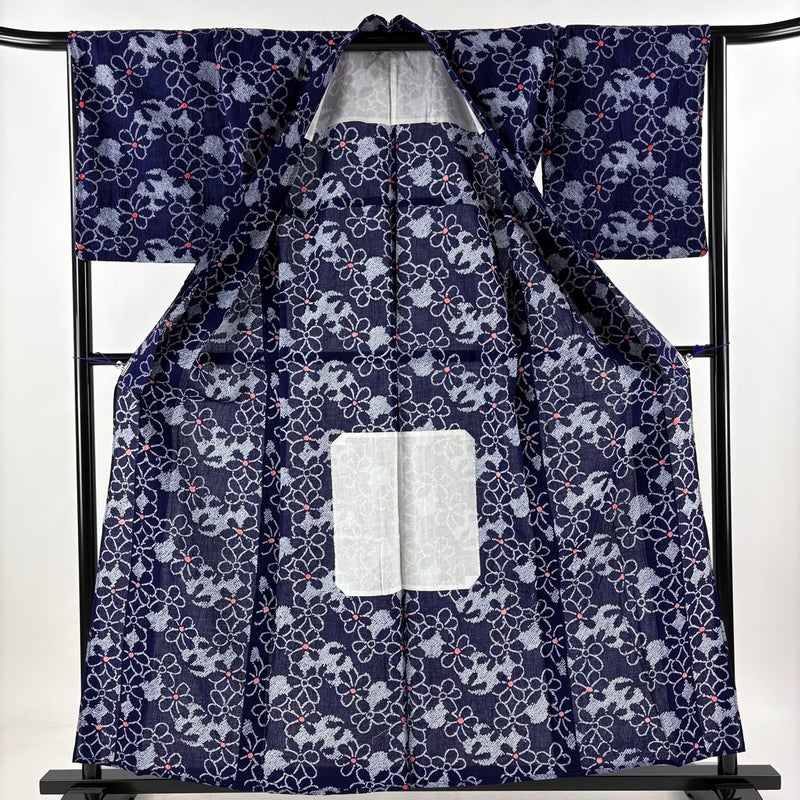 夏のお洒落着として、夏祭りや花火大会、盆踊りなど多くの場面でお召し頂ける夏の定番浴衣です。 小物をアレンジすることで何通りにも着こなすことが出来る一品です。 ※身丈・裄丈の縫込みの長さは測っておりません。 ※帯は丁寧に細部まで状態確認しておりません。予めご了承くださいませ。 上前所々と右胸にシワ、表地所々にほこりの付着がございます。 裏地所々にほこりの付着がございます。 リユース品としては目立った染み傷なく、状態の良いお品でございます。 ※なお、厳しく商品の状態確認を行っておりますが、記載の汚れ以外にも見落とし箇所がある可能性がある旨ご了承いただけますと幸いです。 沢山の商品の中からご覧いただき誠にありがとうございます。