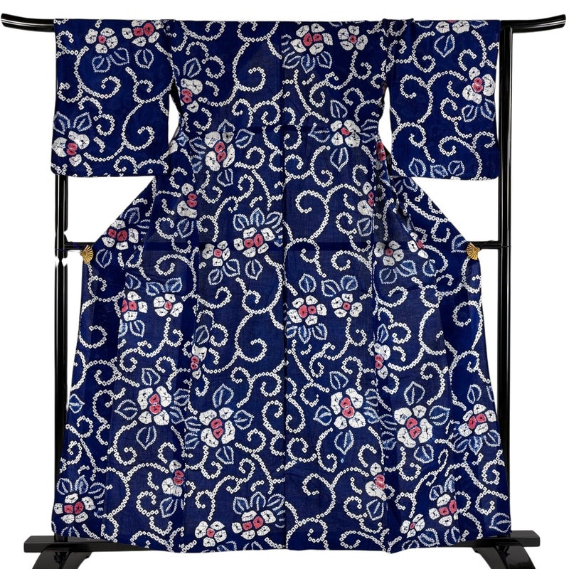 夏のお洒落着として、夏祭りや花火大会、盆踊りなど多くの場面でお召し頂ける夏の定番浴衣です。 小物をアレンジすることで何通りにも着こなすことが出来る一品です。 ※身丈・裄丈の縫込みの長さは測っておりません。 上前にシミ、表地所々にシワ、表地所々に染めむら、表地所々にほこりの付着がございます。 リユース品としては良い状態で、まだまだご活用頂けると思われます。 ※なお、厳しく商品の状態確認を行っておりますが、記載の汚れ以外にも見落とし箇所がある可能性がある旨ご了承いただけますと幸いです。 沢山の商品の中からご覧いただき誠にありがとうございます。