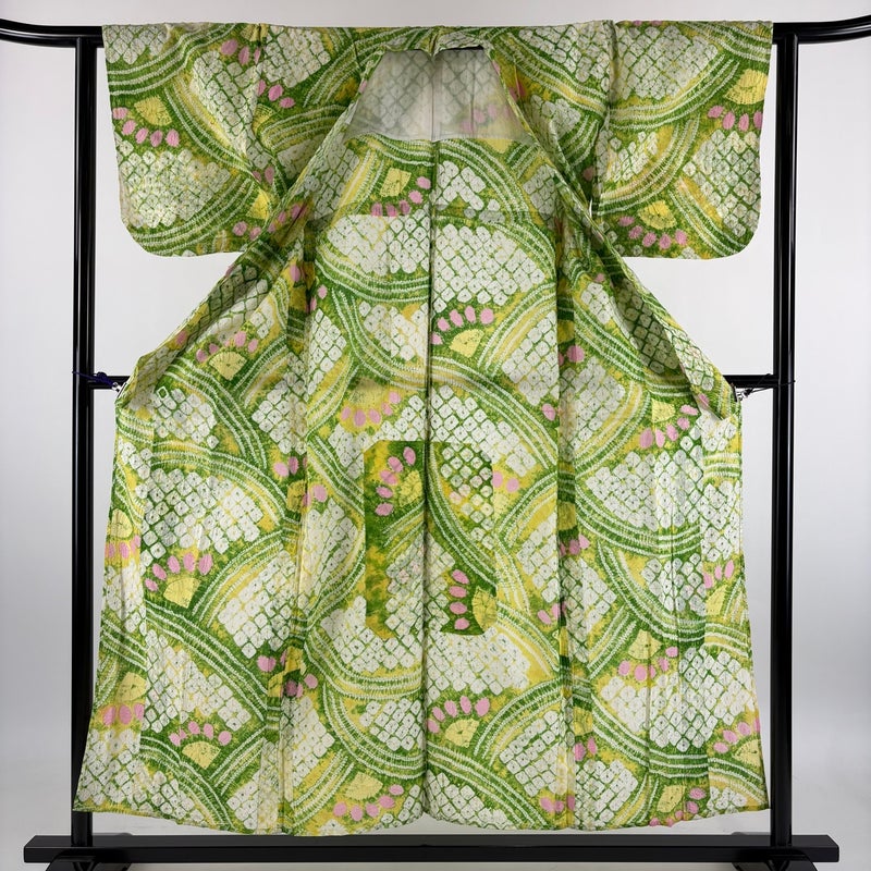 【浴衣】 緑系 黄緑色 名品 B 約150cm~約159cm 裄丈62cm以下 (S)size 袖丈46cm以下 9990-29990 五万以下