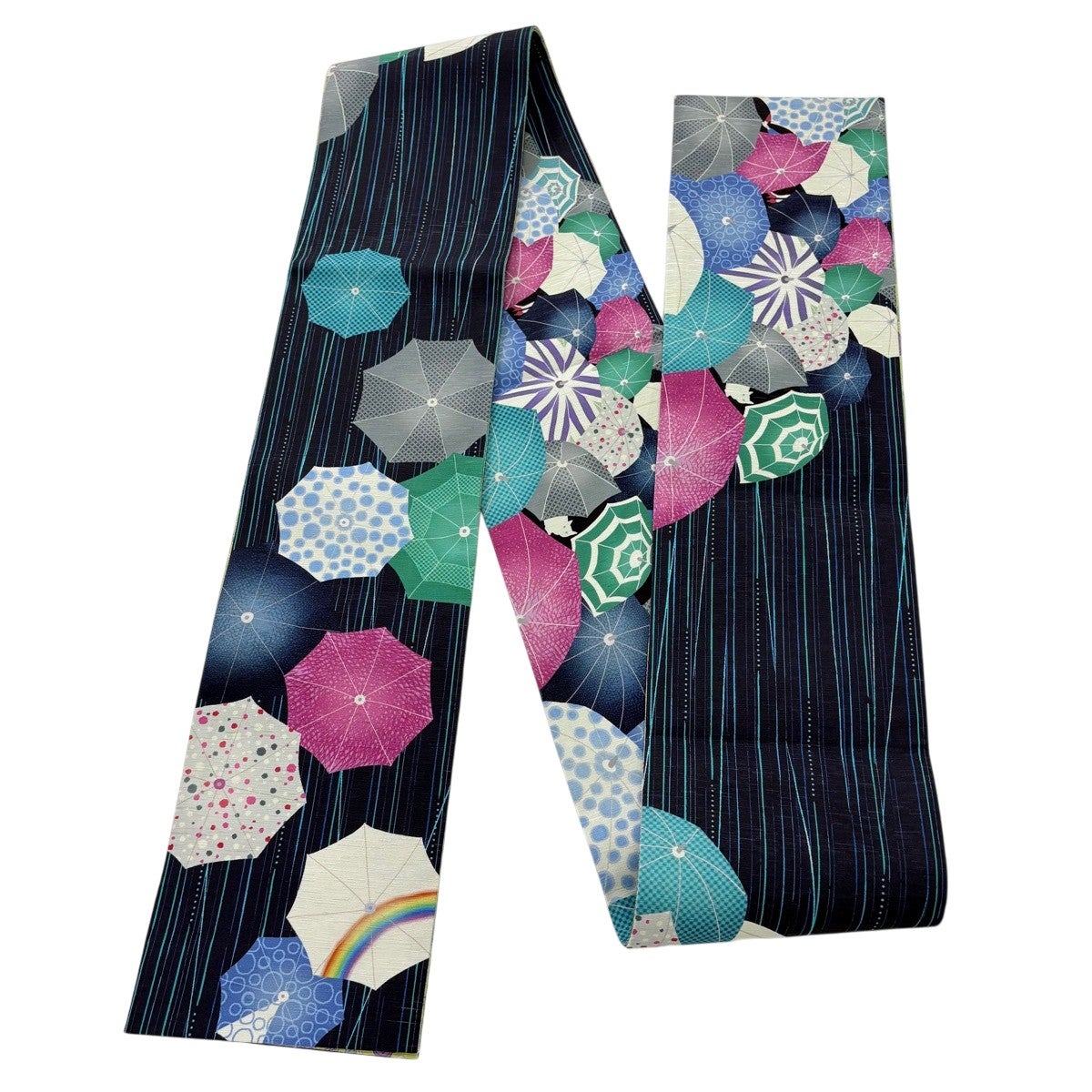 【美品】 浴衣 身丈153cm 裄丈61cm S 絞り浴衣 番傘 流水 紺色 綿 名品