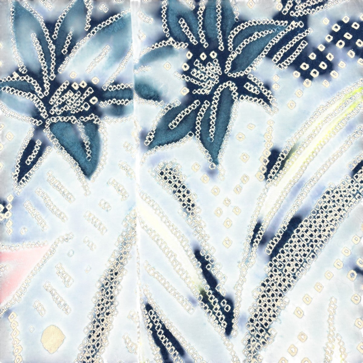 浴衣 身丈153.5cm 裄丈64cm M 絞り浴衣 草花 青 綿 名品