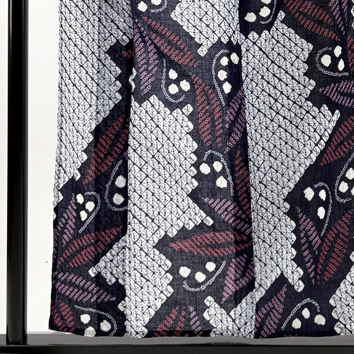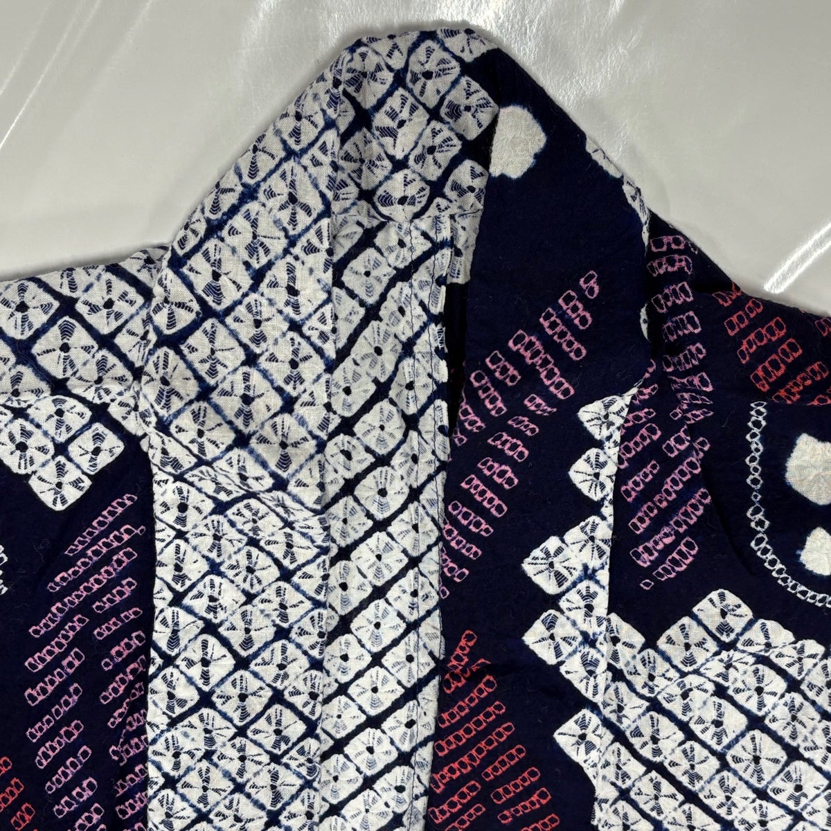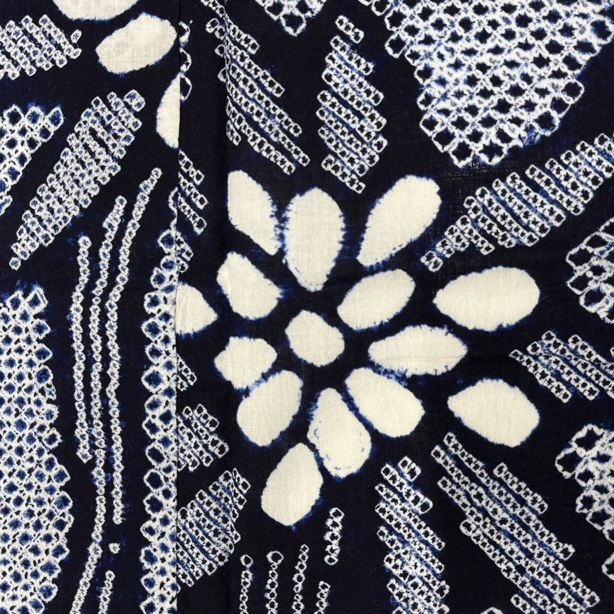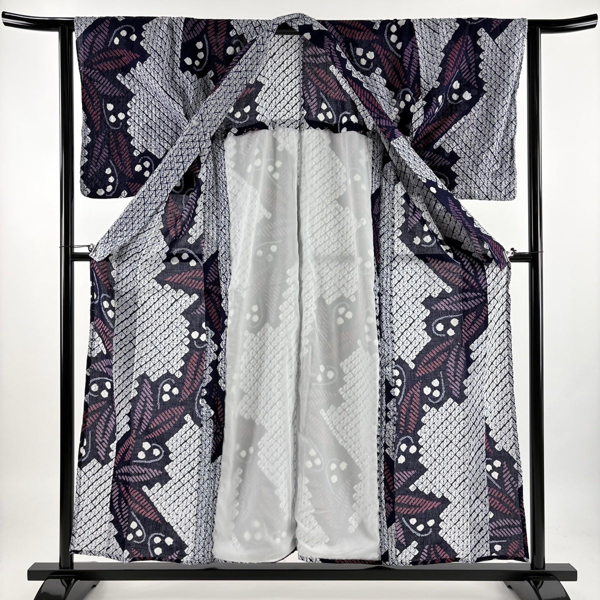 【美品】 浴衣 身丈148.5cm 裄丈63.5cm S 絞り浴衣 幾何学模様 濃紺 綿 名品