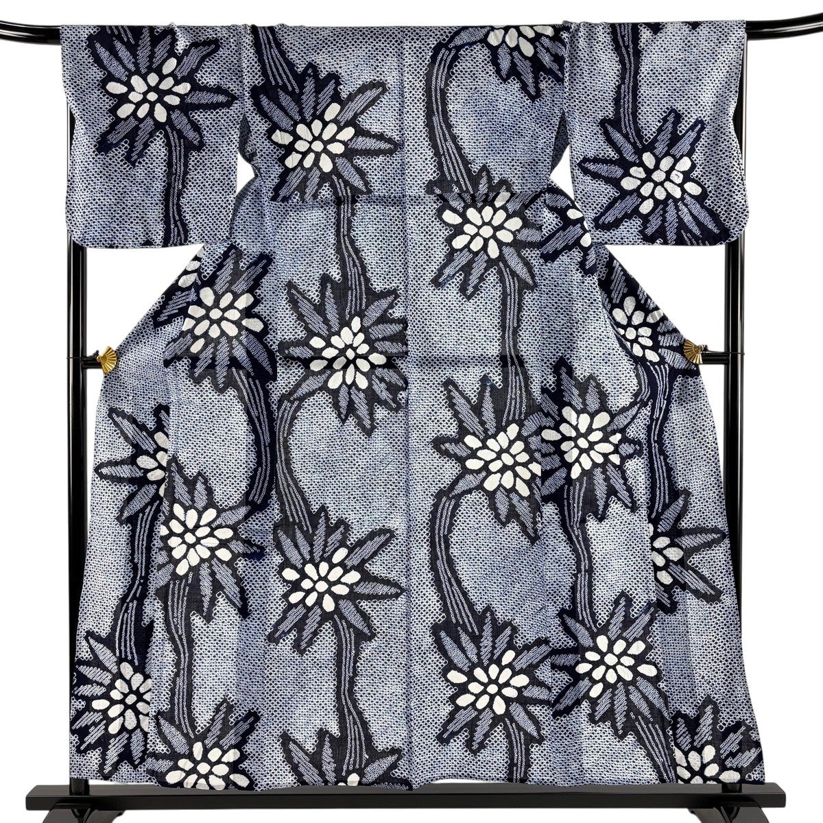 【美品】 浴衣 身丈160cm 裄丈61cm S 絞り浴衣 草花 濃紺 綿 名品