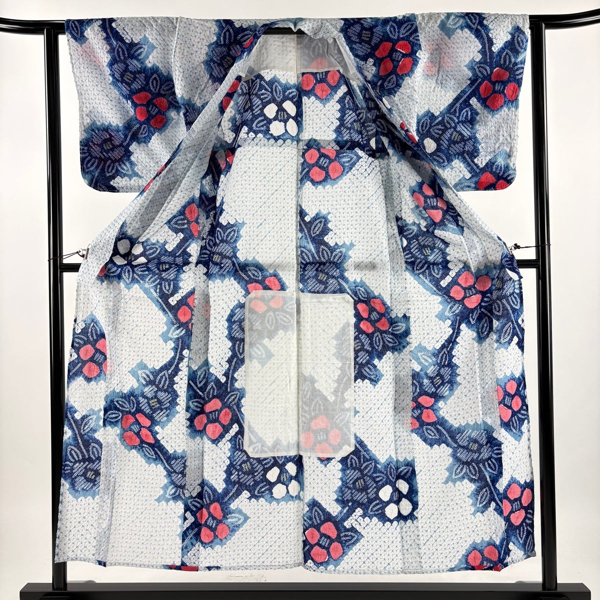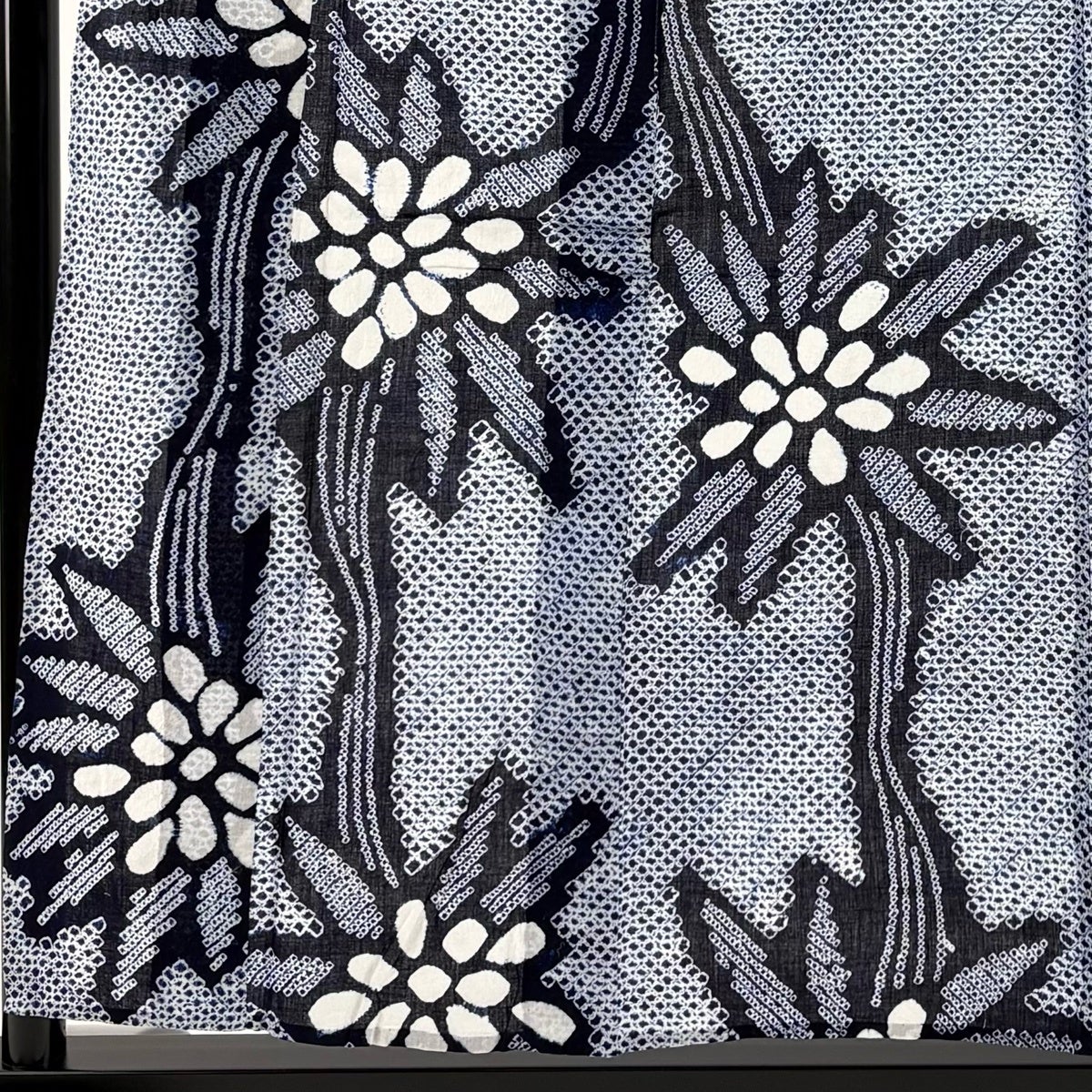 浴衣 身丈151.5cm 裄丈63cm S 絞り浴衣 草花 紺色 綿 名品