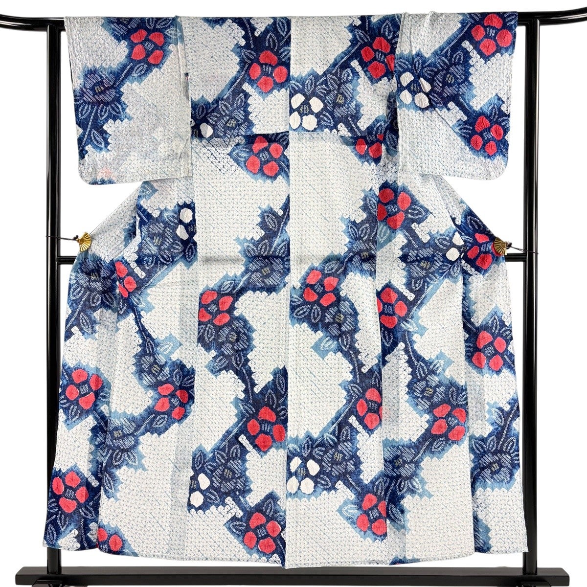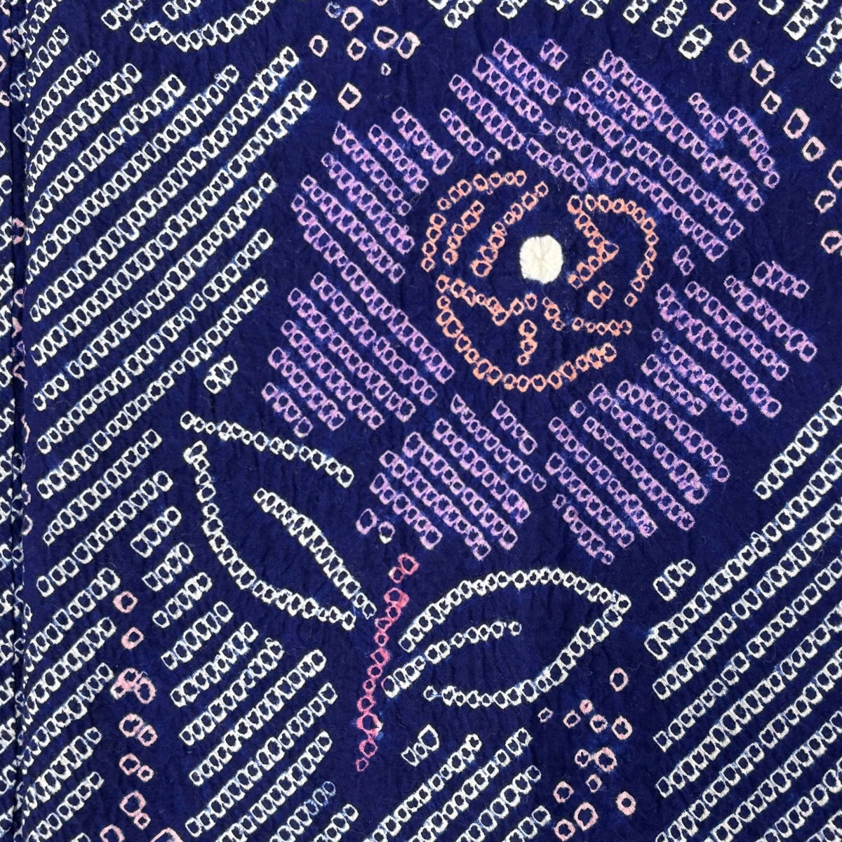 【美品】 浴衣 身丈147cm 裄丈60.5cm S 絞り浴衣 花 亀甲 紺色 綿 名品