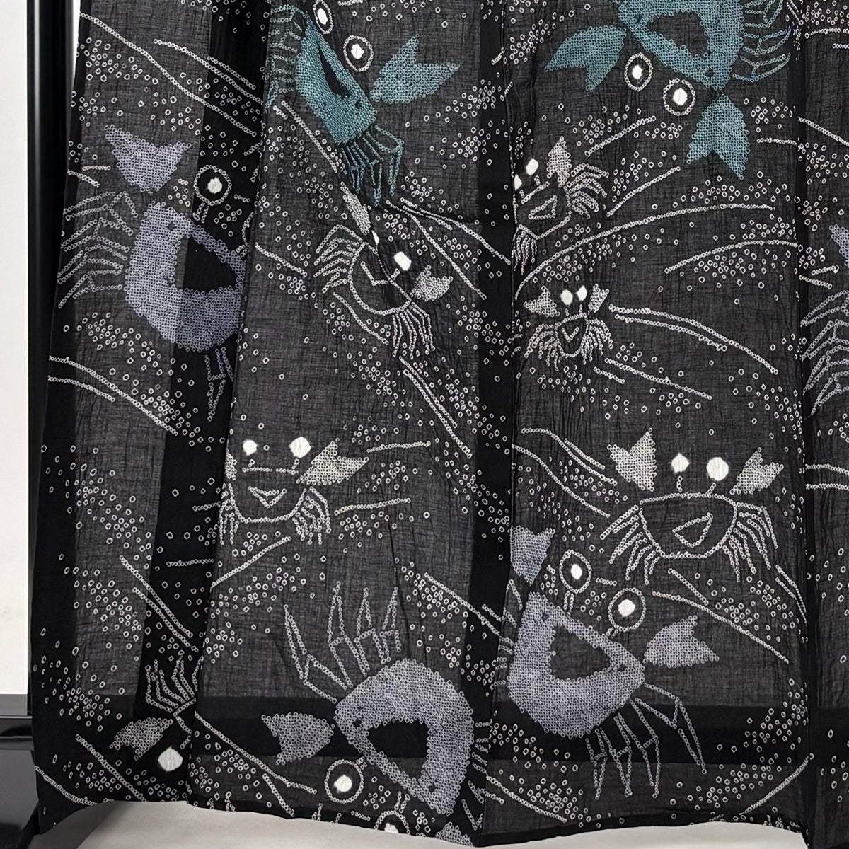 浴衣 身丈150cm 裄丈62cm S 絞り浴衣 草花 黒 綿 名品