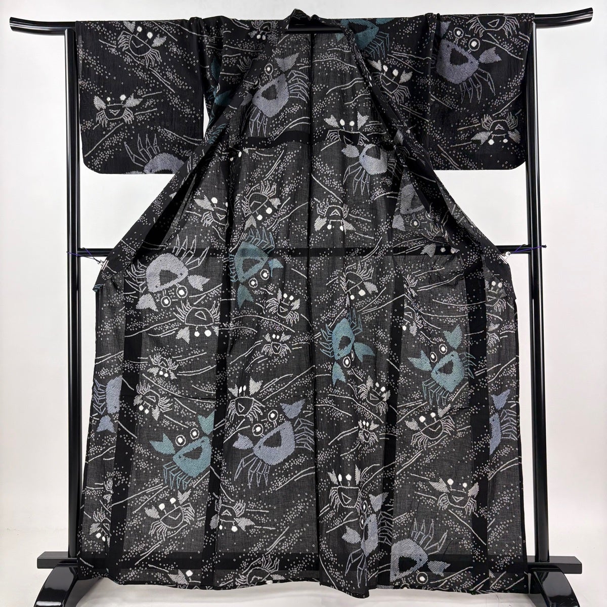 浴衣 身丈151cm 裄丈63.5cm S 絞り浴衣 蝶 草花 黒 綿 名品