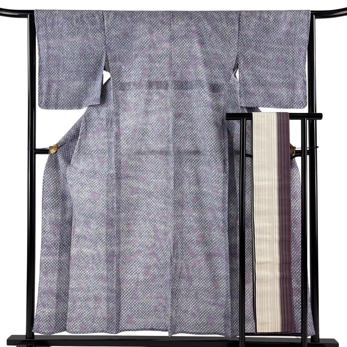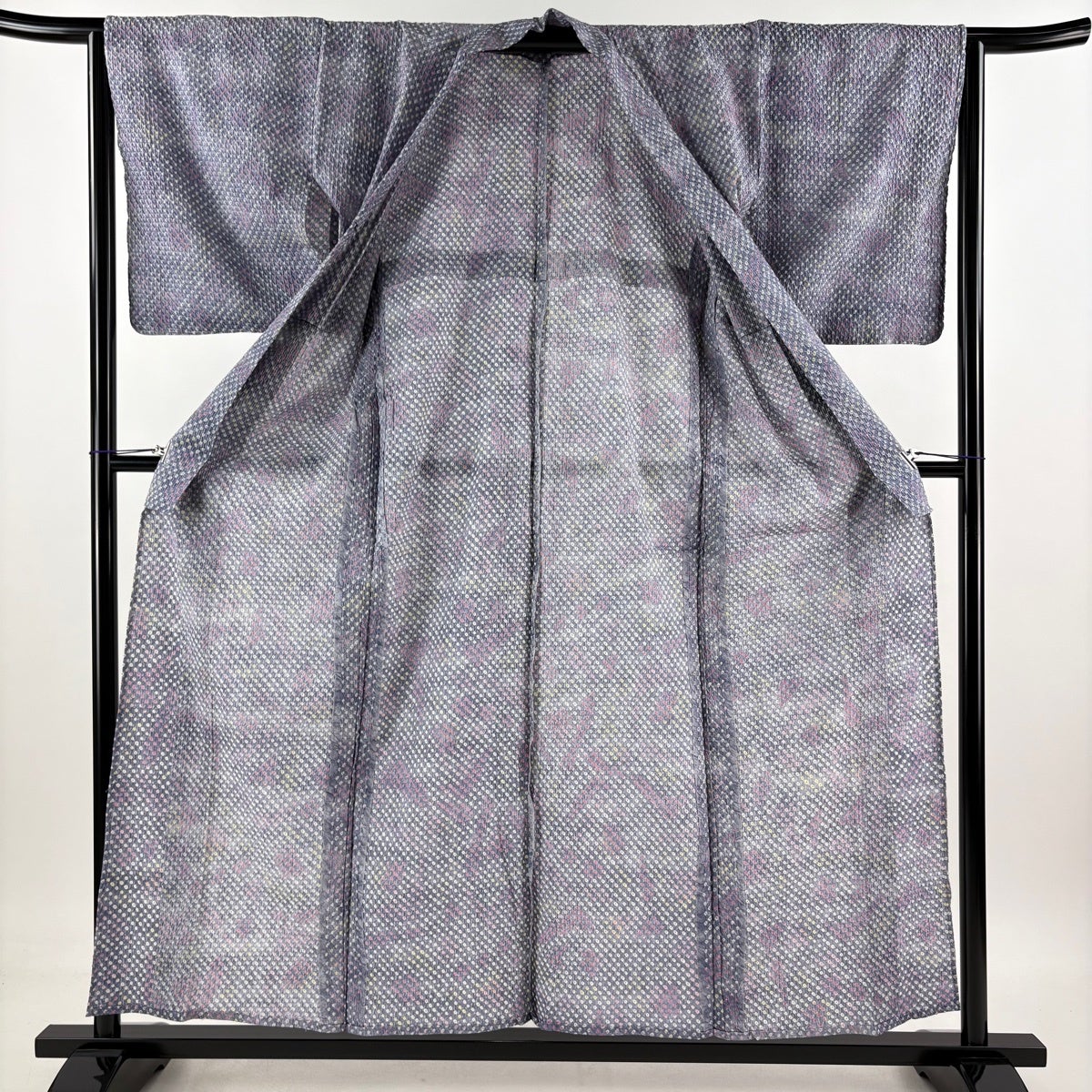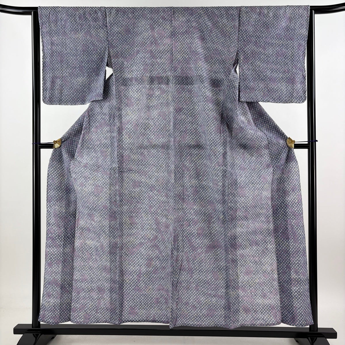 浴衣 身丈159.5cm 裄丈65cm M 絞り浴衣 草花 灰紫 綿 名品