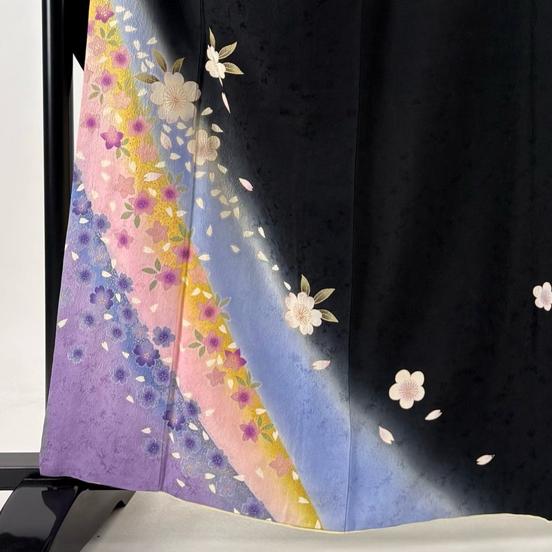 【振袖】 黒系 黒 名品 B 約160cm~約169cm 裄丈66cm (M)size 袖丈91cm以上 9990-29990 二万以下
