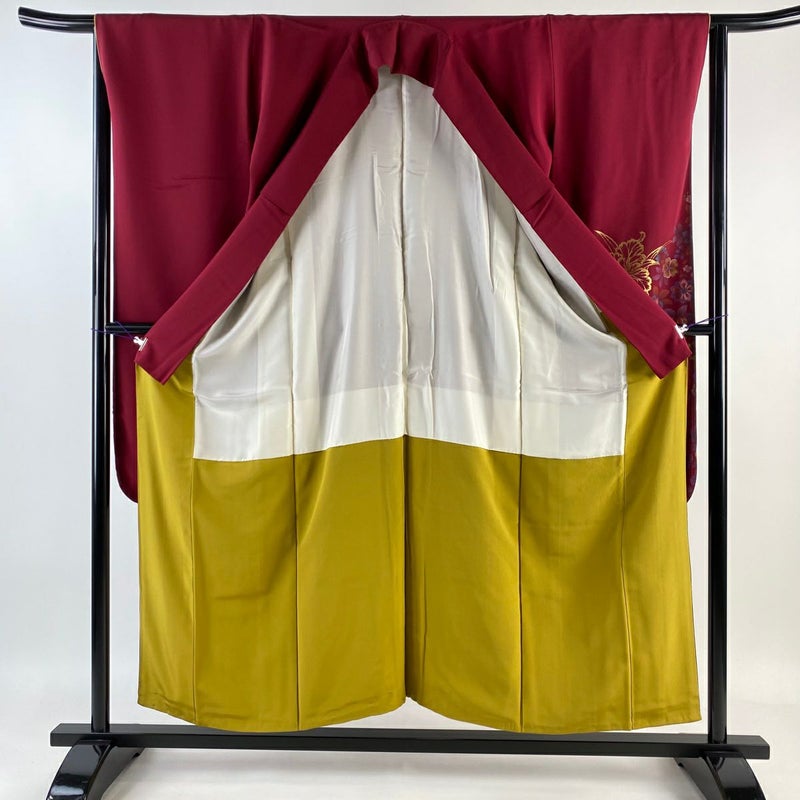 【振袖】 赤系 えんじ色 秀品 A 約150cm~約159cm 裄丈63cm-64cm (M)size 袖丈91cm以上 9990-29990 美品 二万以下