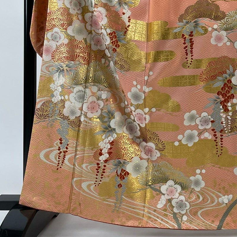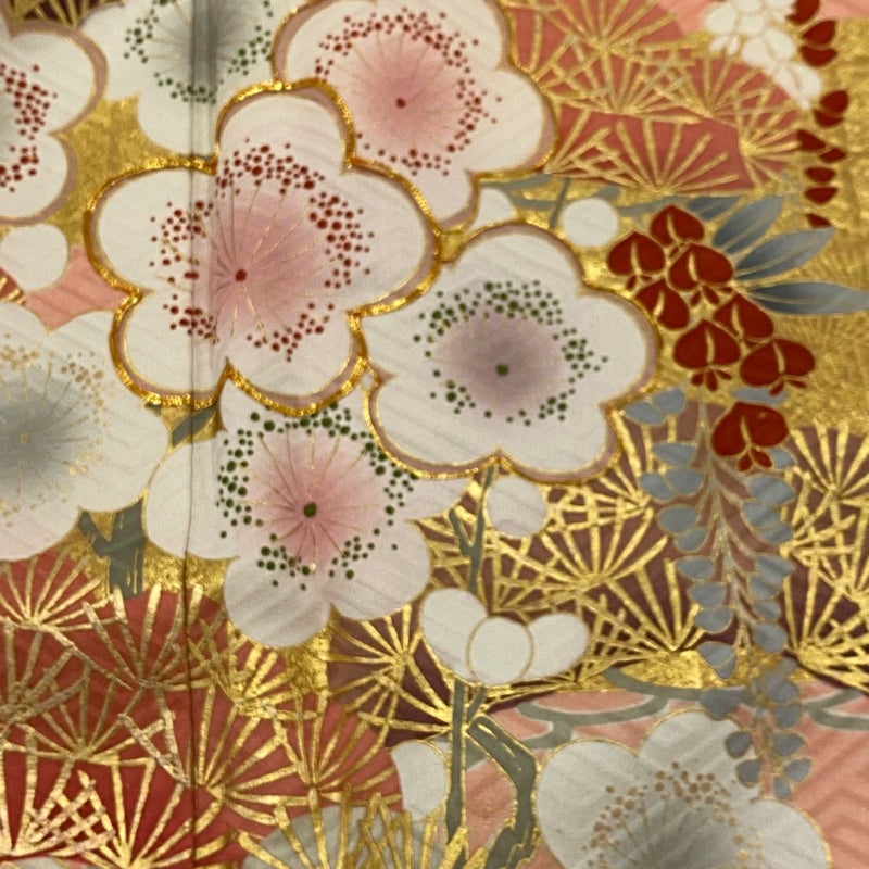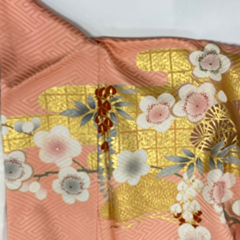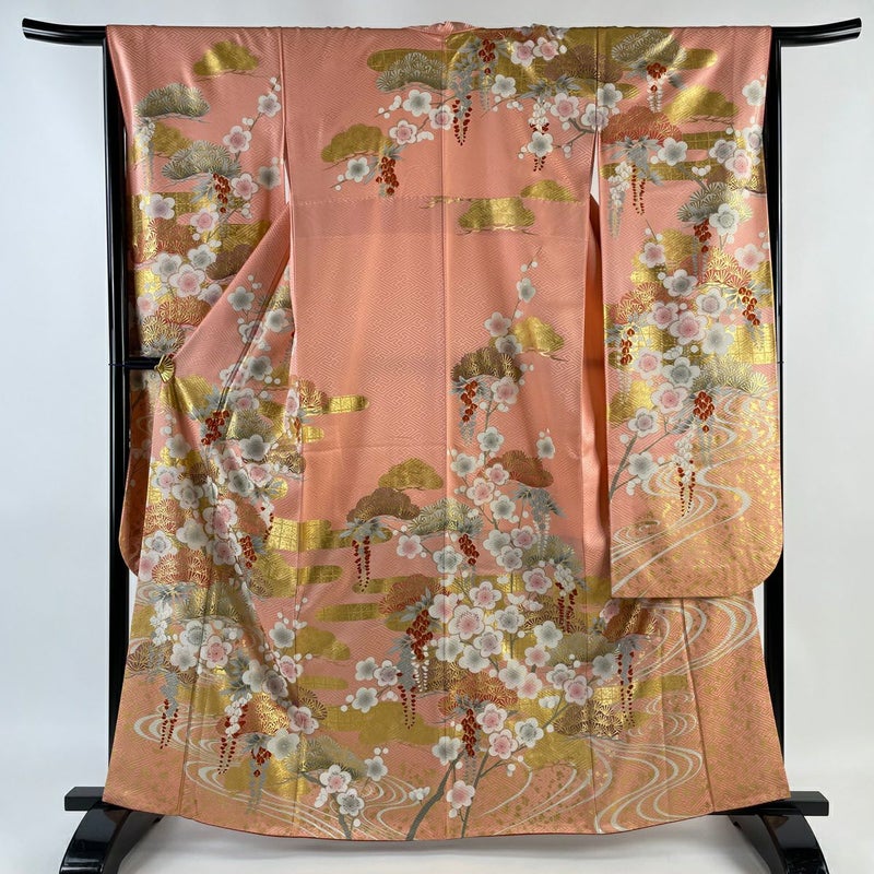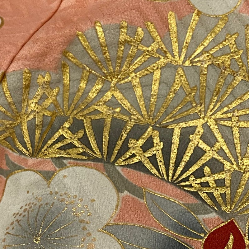【着物ランク】名品 【素材】正絹 【身丈】約163.5cm 【裄丈】約65cm 【袖丈】約112cm 【袖幅】約34.5cm 【前幅】約23.5cm 【後幅】約30cm 【サイズ】M 【着物仕立て】袷 【着用時期】10~5月 【状態ランク】ランクB 【着物着用シーン】成人式、謝恩会