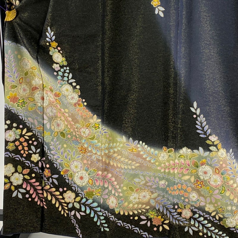 【振袖】 黒系 黒 逸品 B 約160cm~約169cm 裄丈67cm-68cm (L)size 袖丈91cm以上 30000- 五万以上