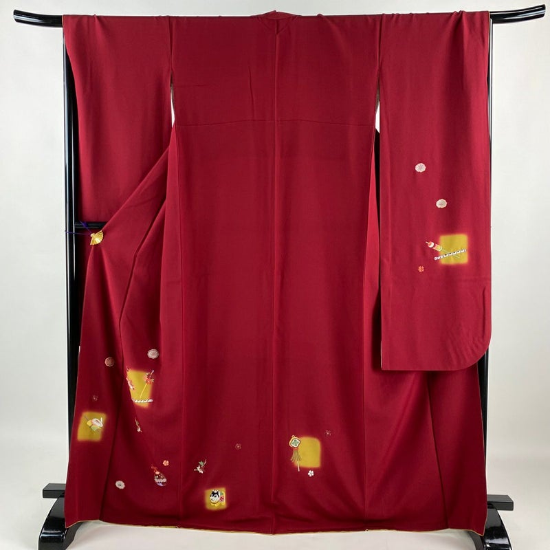 【振袖】 赤系 赤 秀品 A 約160cm~約169cm 裄丈67cm-68cm (L)size 袖丈91cm以上 9990-29990 美品 二万以下