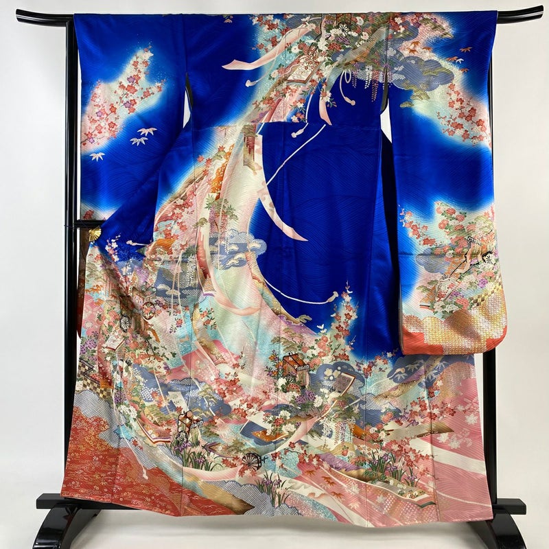 【振袖】 青系 青 秀品 B 約160cm~約169cm 裄丈66cm (M)size 袖丈91cm以上 7990-9980 二万以下