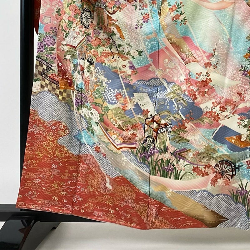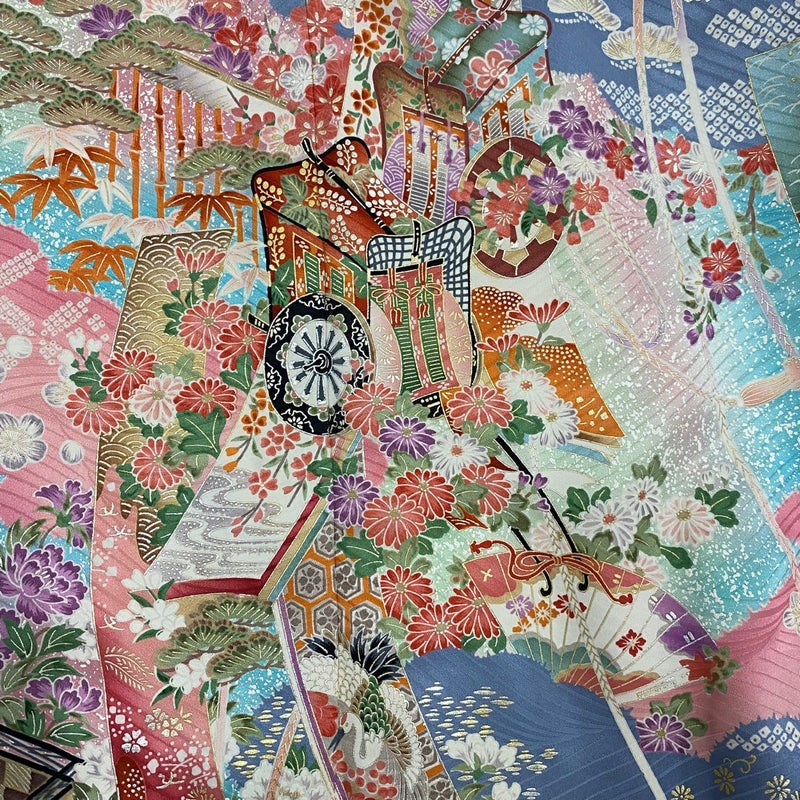 【着物ランク】秀品 【素材】正絹 【身丈】約161cm 【裄丈】約66cm 【袖丈】約109.5cm 【袖幅】約34cm 【前幅】約22.5cm 【後幅】約30cm 【サイズ】M 【着物仕立て】袷 【着用時期】10~5月 【状態ランク】ランクB 【着物着用シーン】成人式、謝恩会