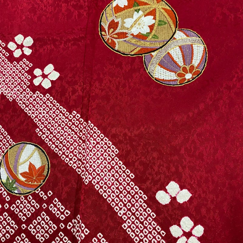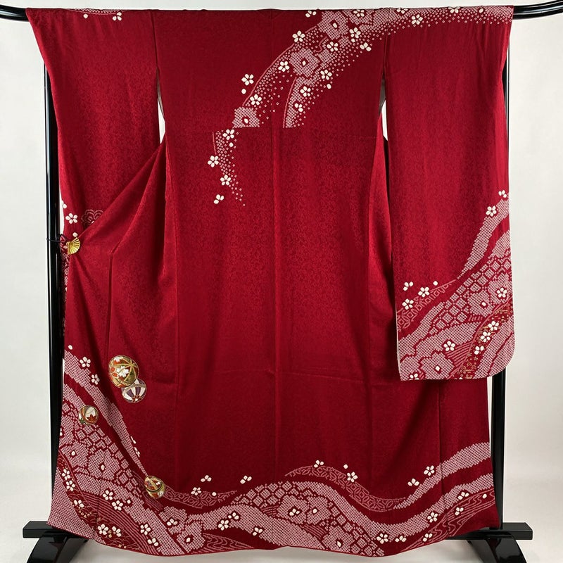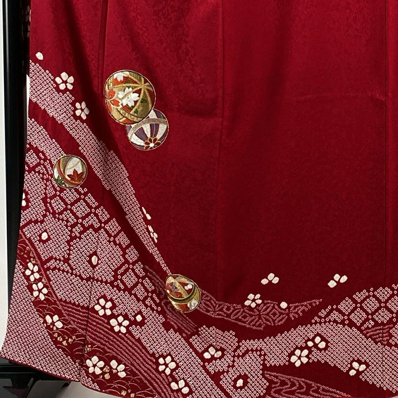 【振袖】 赤系 赤 名品 A 約160cm~約169cm 裄丈69cm以上 (L)size 袖丈91cm以上 9990-29990 美品 二万以下