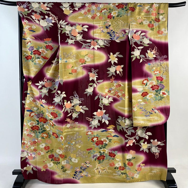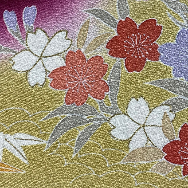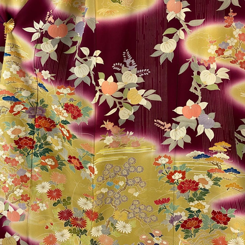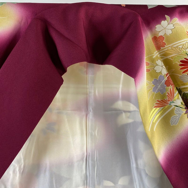 【着物ランク】逸品 【素材】正絹 【身丈】約167.5cm 【裄丈】約67cm 【袖丈】約112.5cm 【袖幅】約35cm 【前幅】約24cm 【後幅】約30.5cm 【サイズ】M 【着物仕立て】袷 【着用時期】10~5月 【状態ランク】ランクB 【作家名】千總 【着物着用シーン】成人式、謝恩会