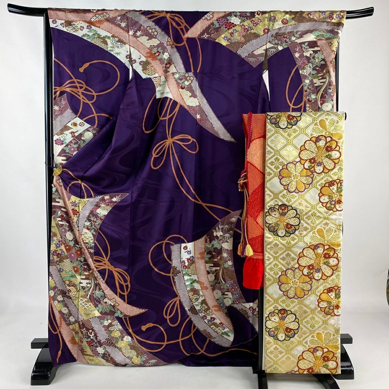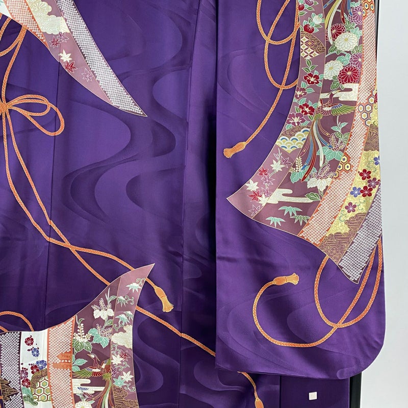 【振袖】 紫系 濃紫 秀品 A 約170cm~約179cm 裄丈67cm-68cm (L)size 袖丈91cm以上 9990-29990 美品 五万以下