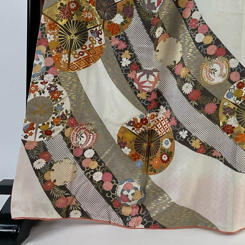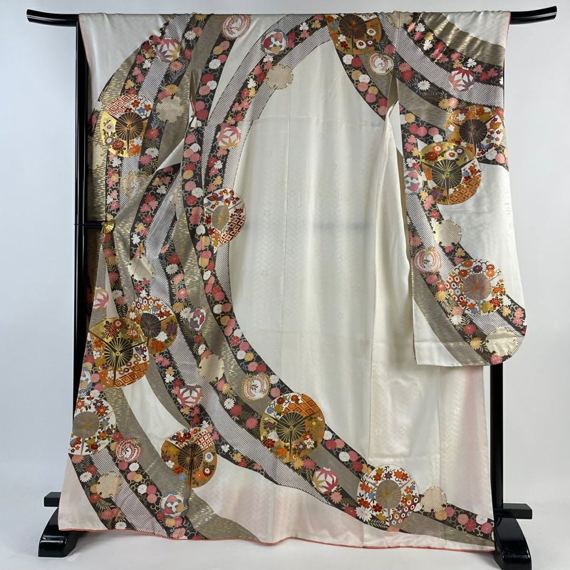 【振袖】 白系 クリーム 名品 C 約160cm~約169cm 裄丈67cm-68cm (M)size 袖丈91cm以上 9990-29990 二万以下