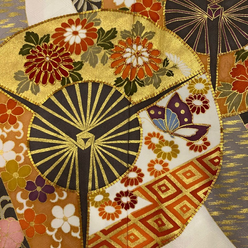 【着物ランク】名品 【素材】正絹 【身丈】約167cm 【裄丈】約67cm 【袖丈】約111cm 【袖幅】約34cm 【前幅】約24.5cm 【後幅】約31cm 【サイズ】M 【着物仕立て】袷 【着用時期】10~5月 【状態ランク】ランクC 【着物着用シーン】成人式、謝恩会