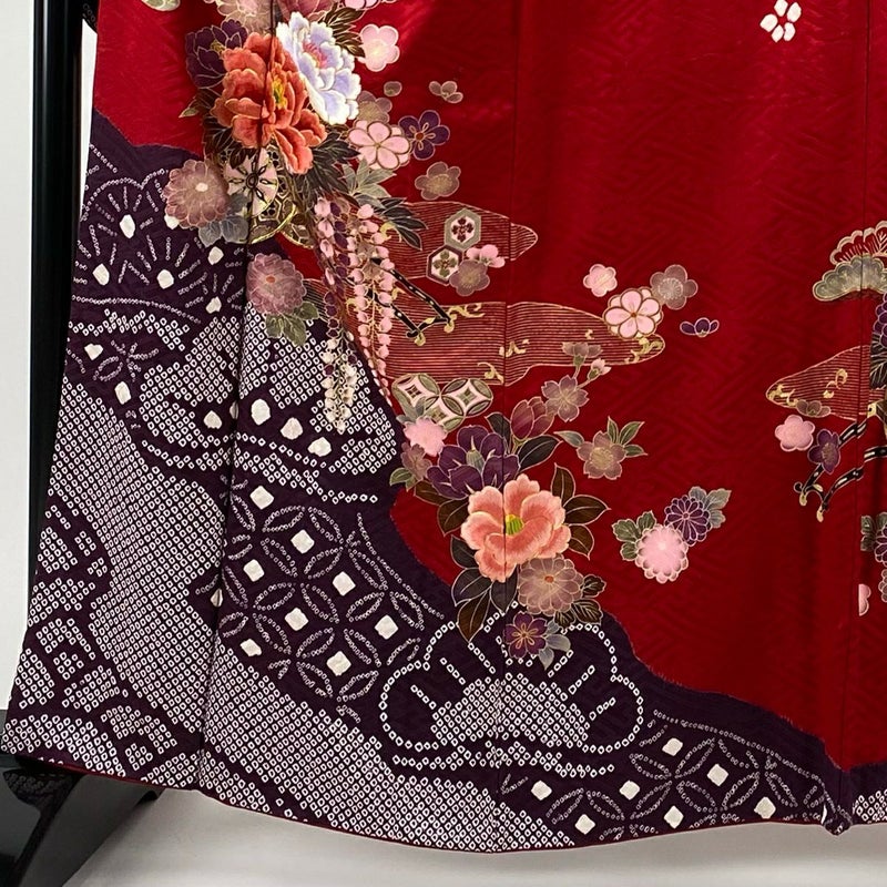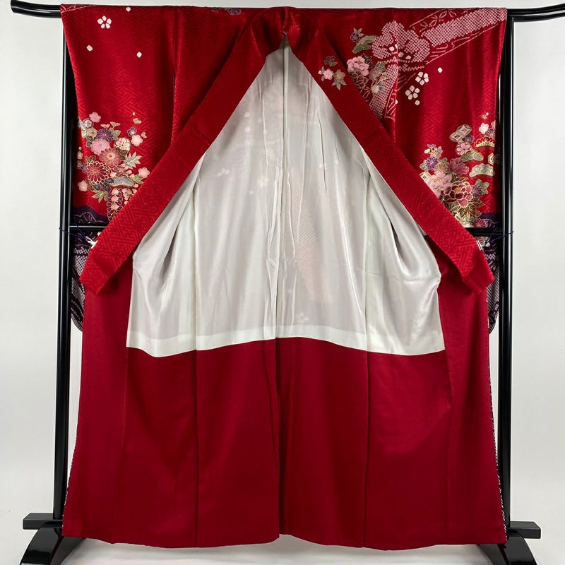 【振袖】 赤系 赤 秀品 A 約160cm~約169cm 裄丈66cm M 袖丈91cm以上 9990-29990 美品 二万以下