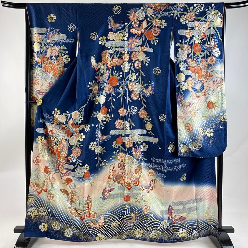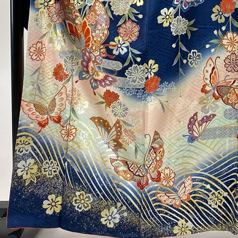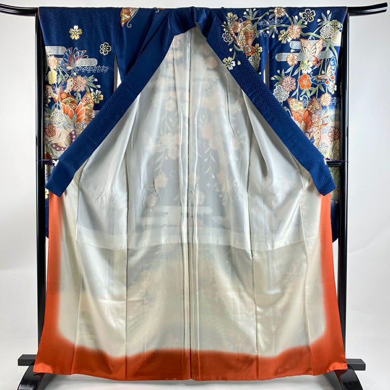 【振袖】 青系 藍色 秀品 B 約160cm~約169cm 裄丈66cm (M)size 袖丈91cm以上 7990-9980 二万以下