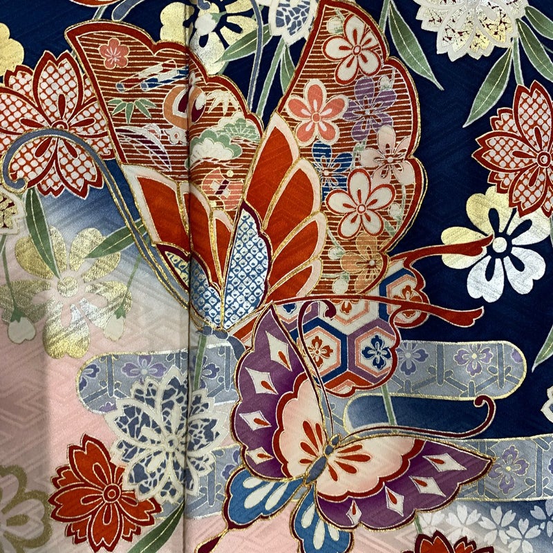 【着物ランク】秀品 【素材】正絹 【身丈】約163cm 【裄丈】約66cm 【袖丈】約102.5cm 【袖幅】約33cm 【前幅】約24cm 【後幅】約29.5cm 【サイズ】M 【着物仕立て】袷 【着用時期】10~5月 【状態ランク】ランクB 【着物着用シーン】成人式、謝恩会