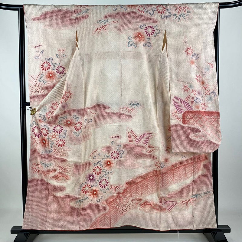 【着物ランク】秀品 【素材】正絹 【身丈】約157cm 【裄丈】約63cm 【袖丈】約100.5cm 【袖幅】約33cm 【前幅】約22cm 【後幅】約28cm 【サイズ】S 【着物仕立て】袷 【着用時期】10~5月 【状態ランク】ランクB 【着物着用シーン】成人式、謝恩会