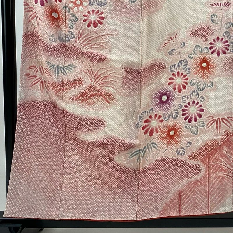 【振袖】 赤系 薄ピンク 秀品 B 約150cm~約159cm 裄丈63cm-64cm S 袖丈91cm以上 7990-9980 二万以下