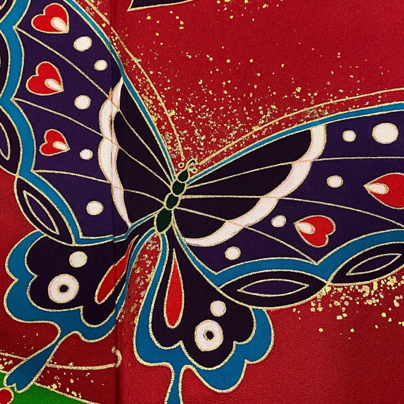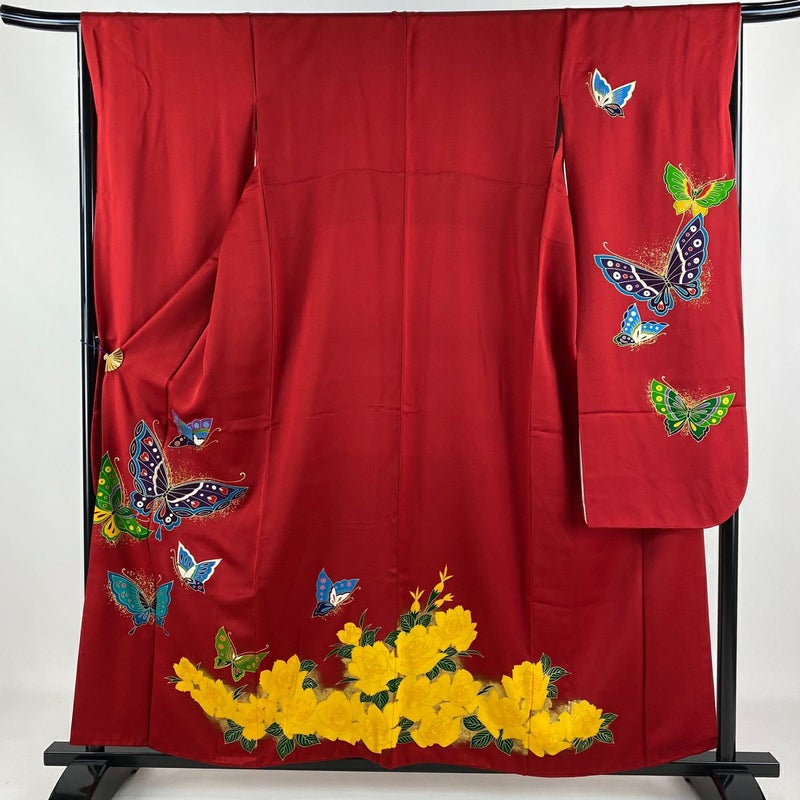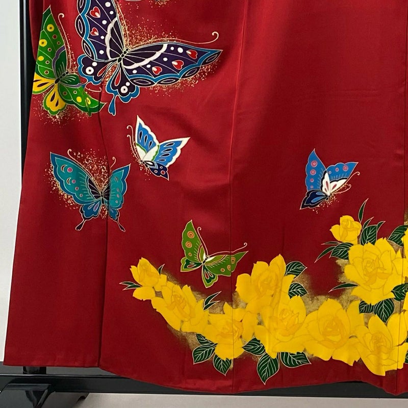 【振袖】 赤系 赤 秀品 A 約150cm~約159cm 裄丈67cm-68cm M 袖丈91cm以上 9990-29990 美品 二万以下