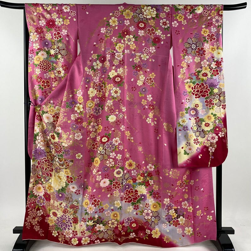 【振袖】 赤系 ピンク 逸品 A 約160cm~約169cm 裄丈63cm-64cm M 袖丈91cm以上 30000- 美品 五万以下