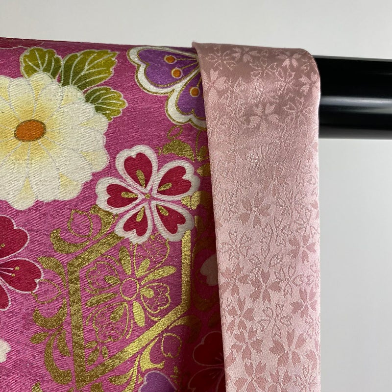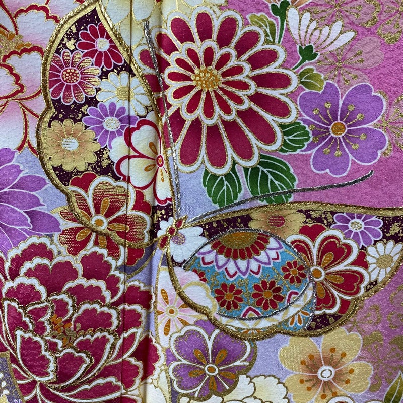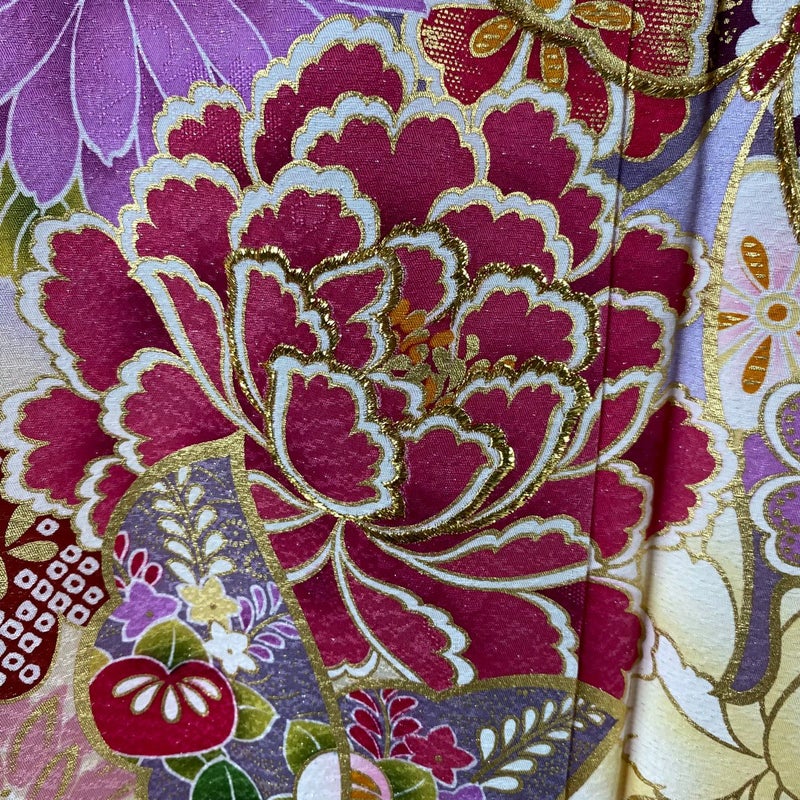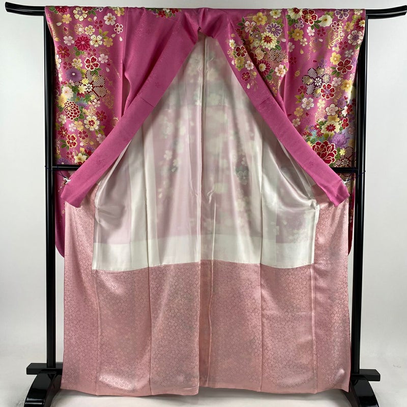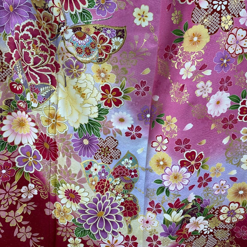 【着物ランク】逸品 【素材】正絹 【身丈】約165.5cm 【裄丈】約64.5cm 【袖丈】約111cm 【袖幅】約34.5cm 【前幅】約24.5cm 【後幅】約30cm 【サイズ】M 【着物仕立て】袷 【着用時期】10~5月 【状態ランク】ランクA 【着物着用シーン】成人式、謝恩会