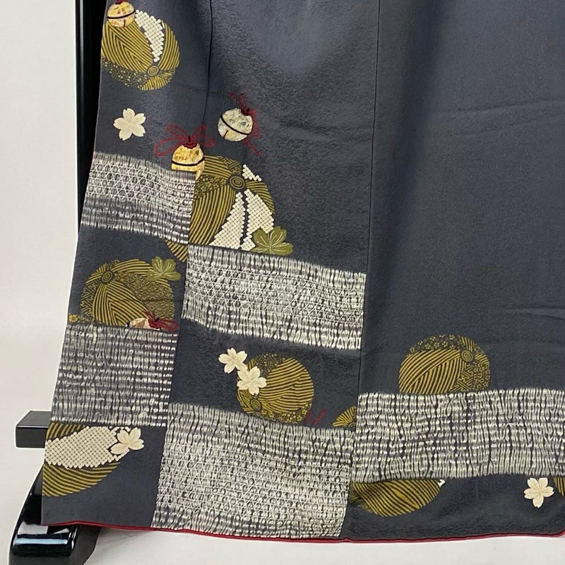 【振袖】 灰色系 灰色 秀品 C 約170cm~約179cm 裄丈69cm以上 L 袖丈91cm以上 7990-9980 二万以下