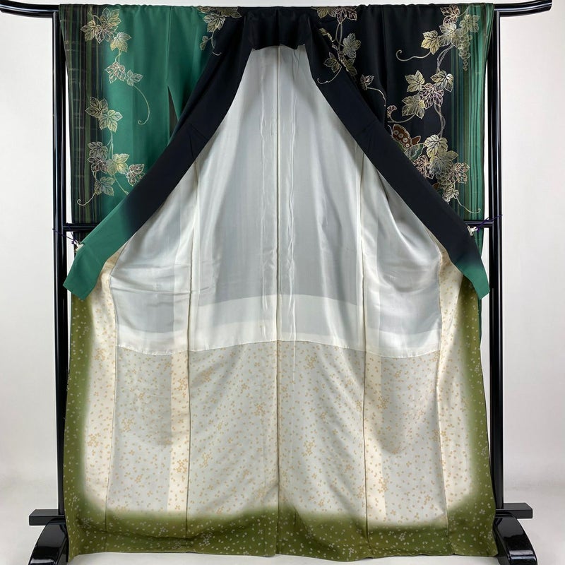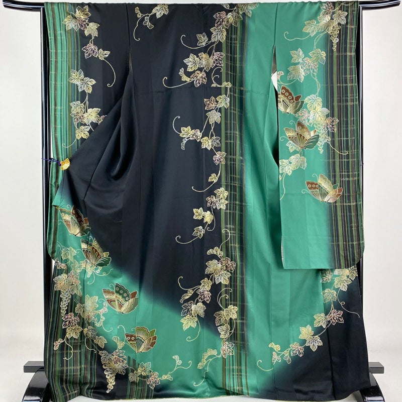 【振袖】 黒系 黒 秀品 B 約170cm~約179cm 裄丈65cm M 袖丈91cm以上 7990-9980 二万以下