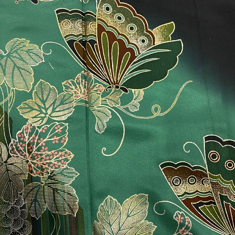 【着物ランク】秀品 【素材】正絹 【身丈】約172cm 【裄丈】約65cm 【袖丈】約113cm 【袖幅】約34cm 【前幅】約24cm 【後幅】約30cm 【サイズ】M 【着物仕立て】袷 【着用時期】10~5月 【状態ランク】ランクB 【着物着用シーン】成人式、謝恩会
