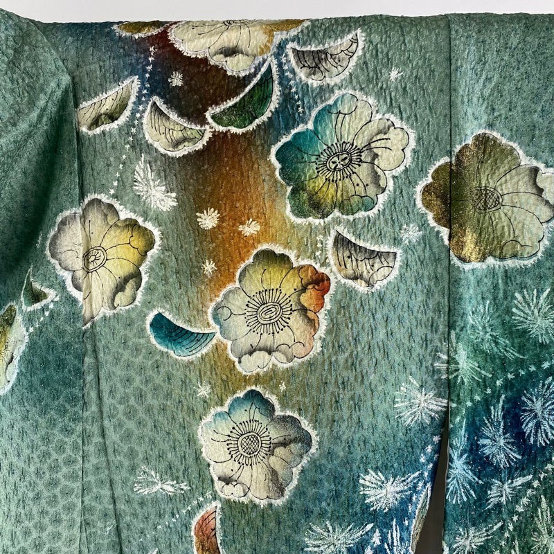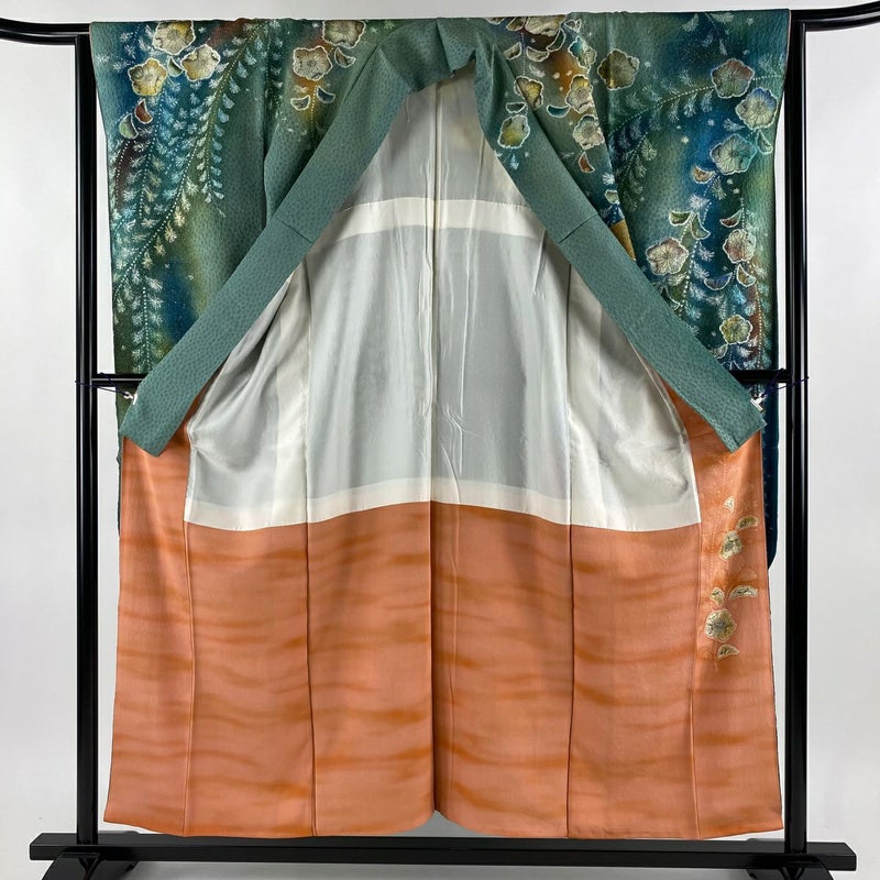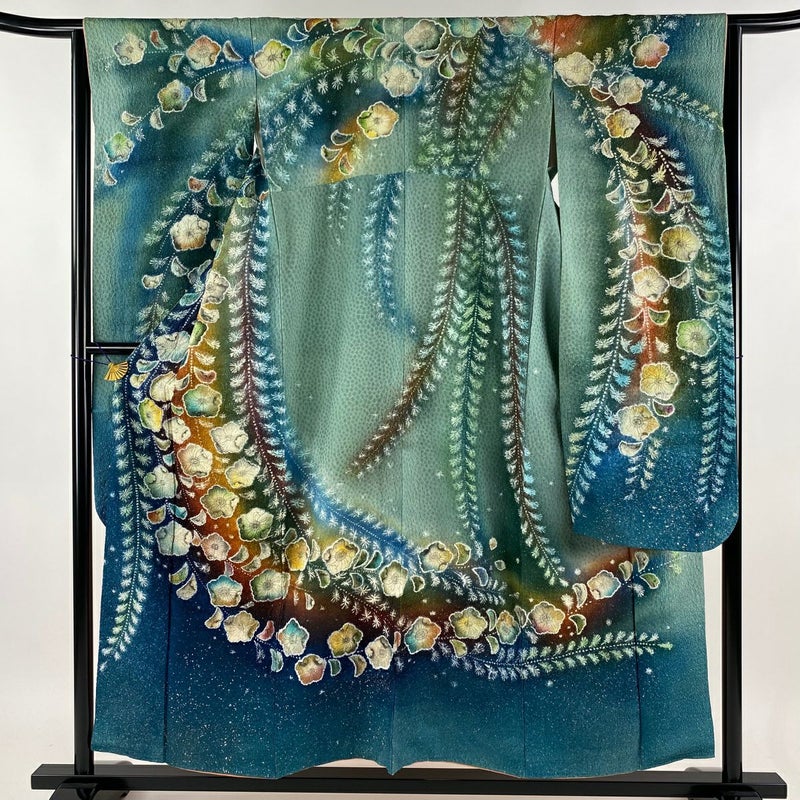 【振袖】 灰色系 灰緑 逸品 A 約150cm~約159cm 裄丈63cm-64cm S 袖丈91cm以上 30000- 美品 五万以下