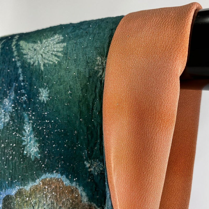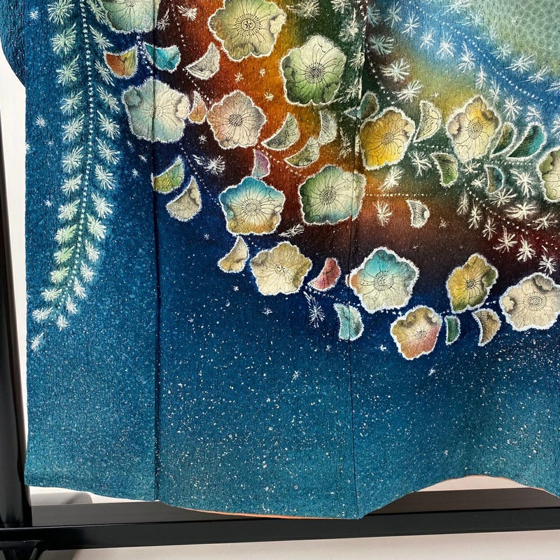 【着物ランク】逸品 【素材】正絹 【身丈】約154cm 【裄丈】約63.5cm 【袖丈】約107cm 【袖幅】約33cm 【前幅】約24cm 【後幅】約29.5cm 【サイズ】S 【着物仕立て】袷 【着用時期】10~5月 【状態ランク】ランクA 【着物着用シーン】成人式、謝恩会