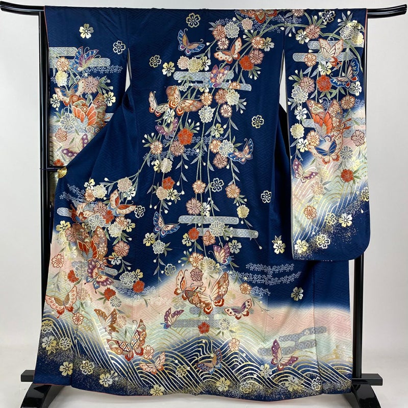 【振袖】 青系 藍色 秀品 A 約160cm~約169cm 裄丈66cm M 袖丈91cm以上 9990-29990 美品 二万以下