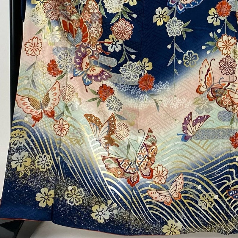【着物ランク】秀品 【素材】正絹 【身丈】約164.5cm 【裄丈】約66cm 【袖丈】約104cm 【袖幅】約33.5cm 【前幅】約25cm 【後幅】約30cm 【サイズ】M 【着物仕立て】袷 【着用時期】10~5月 【状態ランク】ランクA 【着物着用シーン】成人式、謝恩会