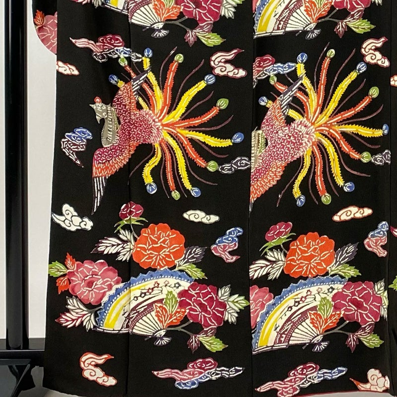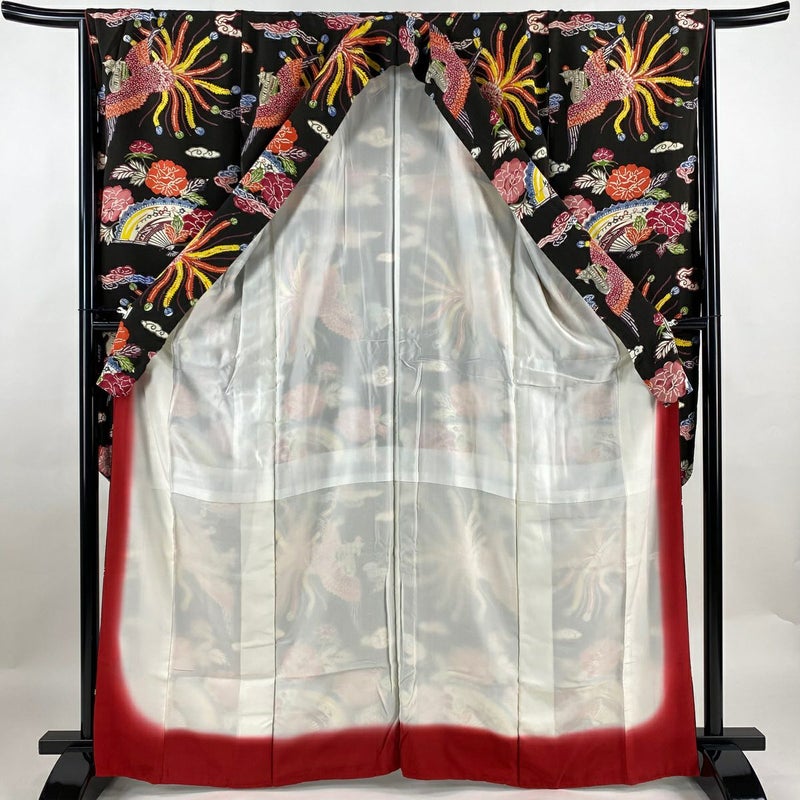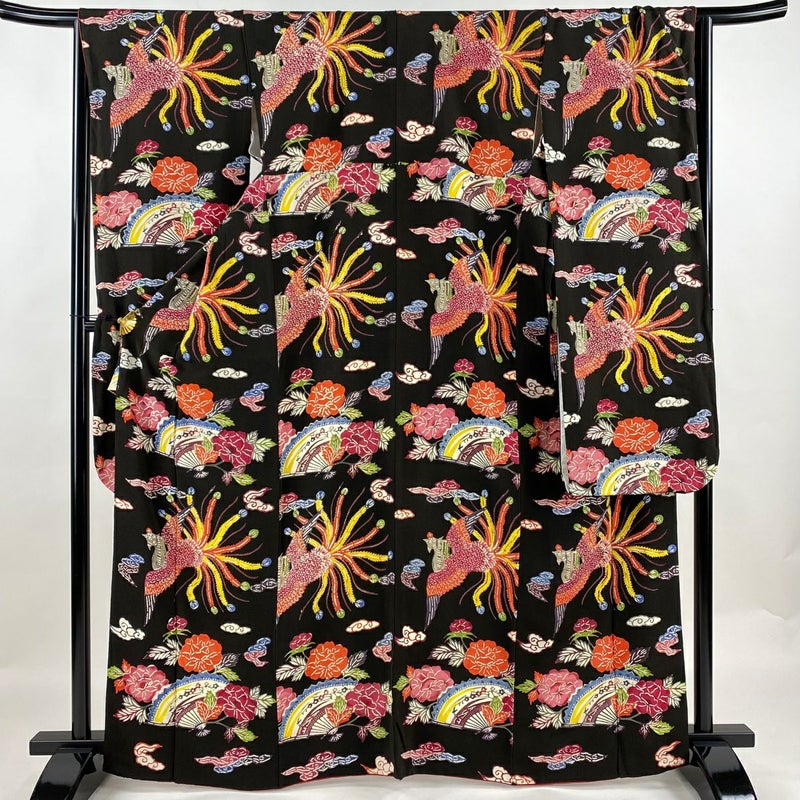【振袖】 黒系 黒 秀品 A 約160cm~約169cm 裄丈66cm M 袖丈91cm以上 9990-29990 美品 二万以下