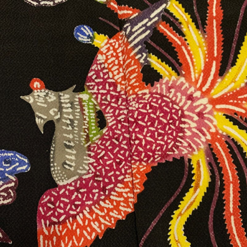 【着物ランク】秀品 【素材】正絹 【身丈】約165cm 【裄丈】約66.5cm 【袖丈】約103cm 【袖幅】約34cm 【前幅】約23cm 【後幅】約28cm 【サイズ】M 【着物仕立て】袷 【着用時期】10~5月 【状態ランク】ランクA 【着物着用シーン】成人式、謝恩会