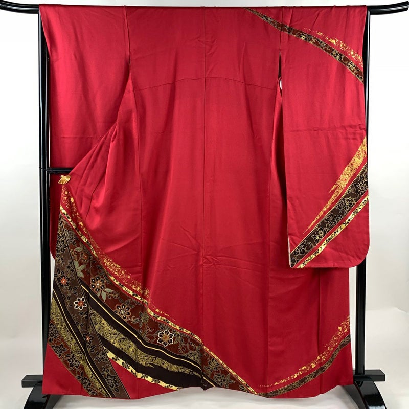 【着物ランク】秀品 【素材】正絹 【身丈】約162cm 【裄丈】約67.5cm 【袖丈】約109.5cm 【袖幅】約34cm 【前幅】約23.5cm 【後幅】約30cm 【サイズ】L 【着物仕立て】袷 【着用時期】10~5月 【状態ランク】ランクA 【着物着用シーン】成人式、謝恩会