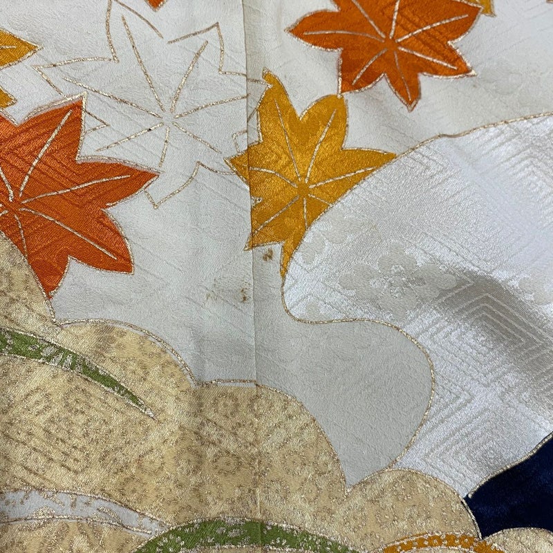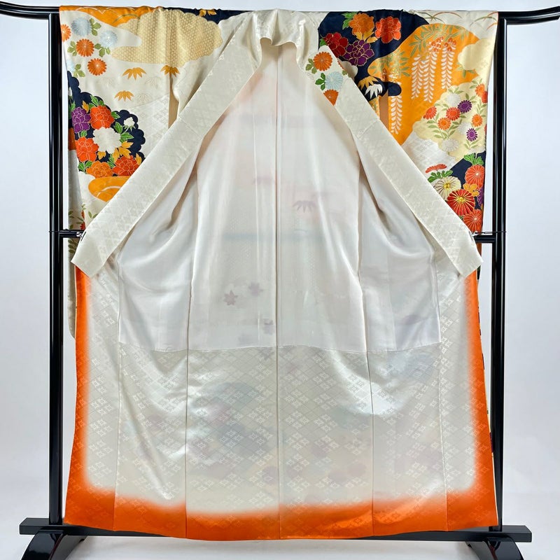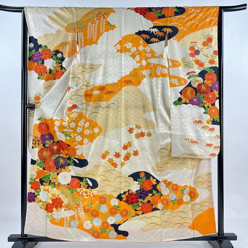 【振袖】 白系 クリーム 秀品 C 約150cm~約159cm 裄丈63cm-64cm M 袖丈91cm以上 7990-9980 二万以下