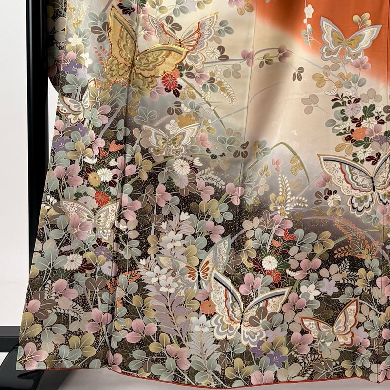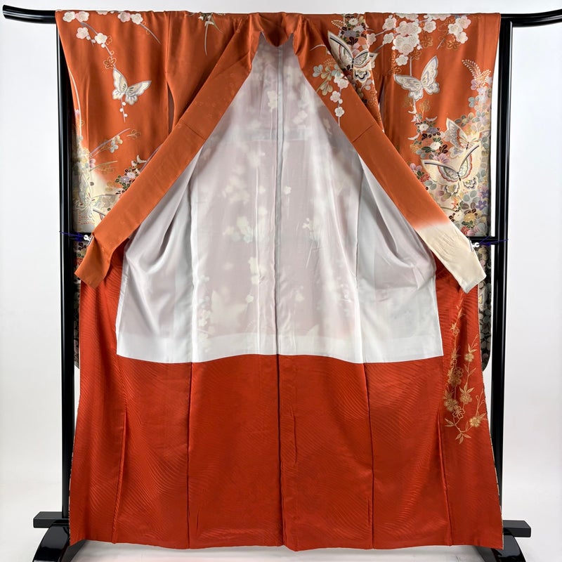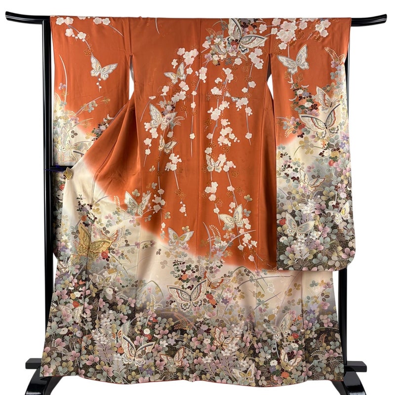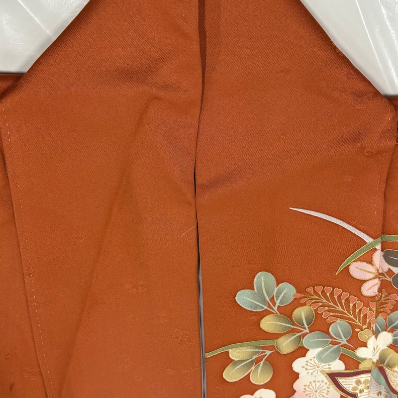 【振袖】 赤系 オレンジ 秀品 B 約160cm~約169cm 裄丈66cm (M)size 袖丈91cm以上 7990-9980 二万以下