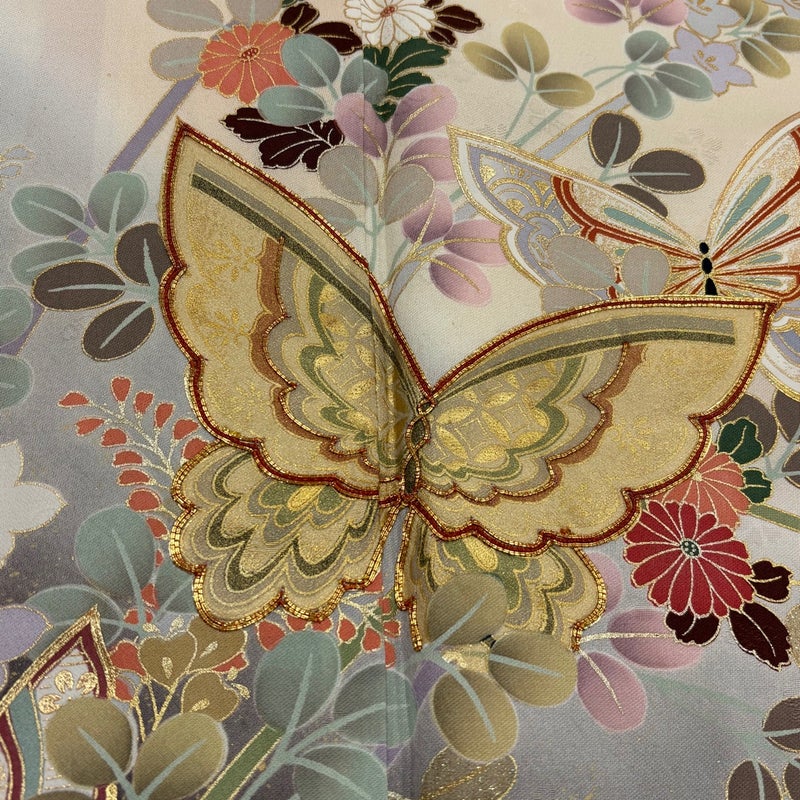 【着物ランク】秀品 【素材】正絹 【身丈】約163.5cm 【裄丈】約66cm 【袖丈】約112cm 【袖幅】約34cm 【前幅】約24cm 【後幅】約30cm 【サイズ】M 【着物仕立て】袷 【着用時期】10~5月 【状態ランク】ランクB 【着物着用シーン】成人式、謝恩会