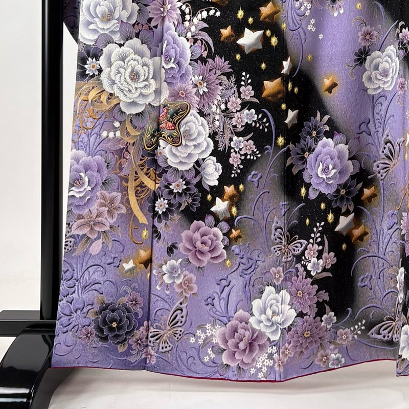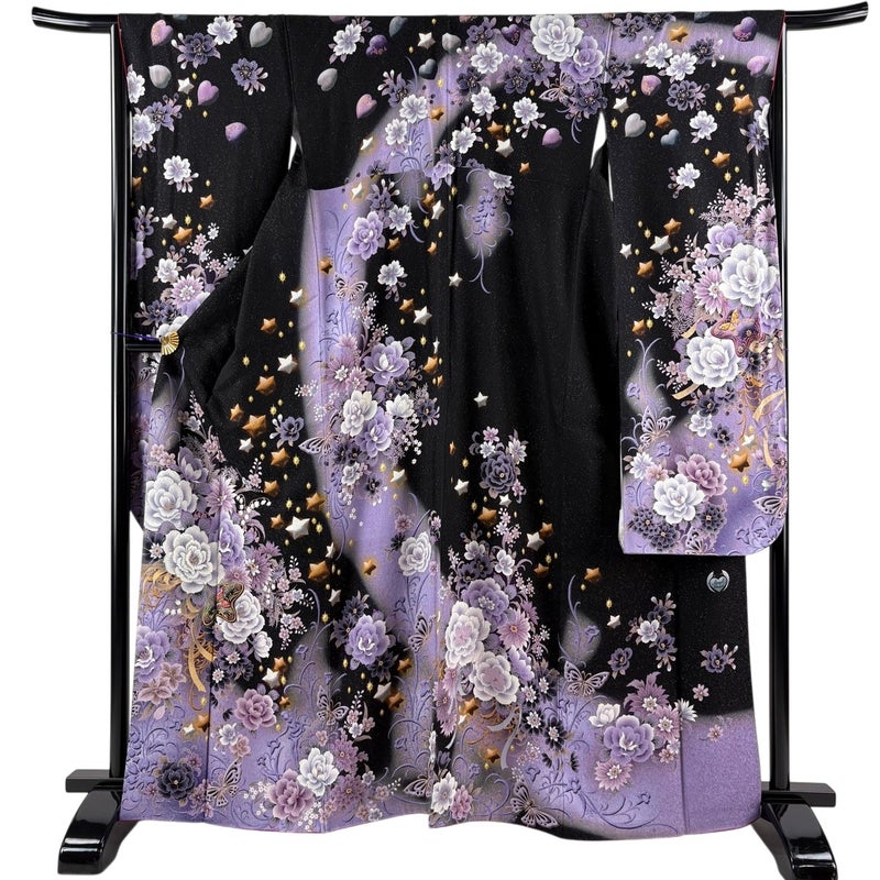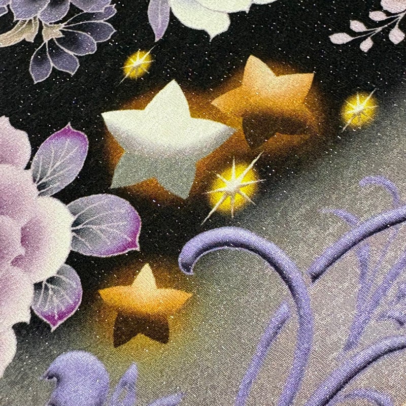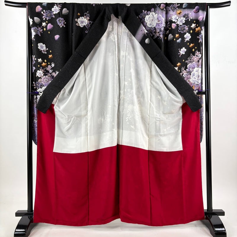 【振袖】 黒系 黒 逸品 A 約160cm~約169cm 裄丈67cm-68cm (M)size 袖丈91cm以上 30000- 美品 五万以下