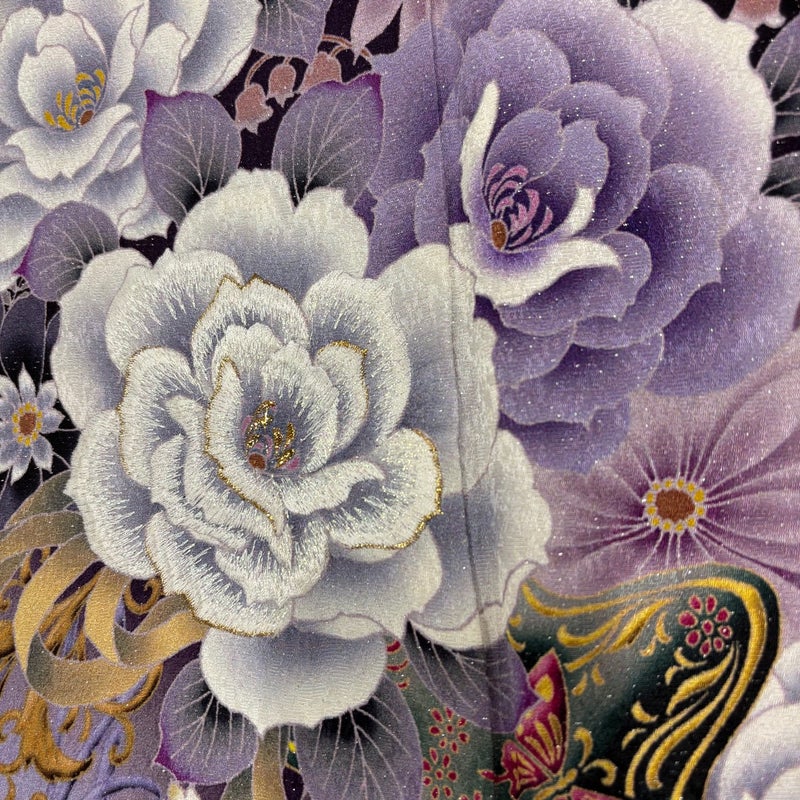 【着物ランク】逸品 【素材】正絹 【身丈】約164cm 【裄丈】約67cm 【袖丈】約109cm 【袖幅】約33.5cm 【前幅】約25cm 【後幅】約30cm 【サイズ】M 【着物仕立て】袷 【着用時期】10~5月 【状態ランク】ランクA 【着物着用シーン】成人式、謝恩会